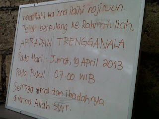 Pengalaman minggu kemarin, ada teman satu ruangan kantor, beliau seorang Ibu yang telaten merawat keluarganya dengan penuh kasih sayang, yang akan melaksanakan umroh ke tanah suci Makkah al Mukarommah. Mendadak sekali saat pagi hari sedang melakukan persiapan menjelang keberangkatan sore harinya ke Bandara selanjutnya ke Mekkah, anak laki-laki satu-satunya dan jadi kebanggaan keluarga besarnya meninggal tertabrak kereta api saat mau kuliah ke kampusnya di FE - Universitas Indonesia.